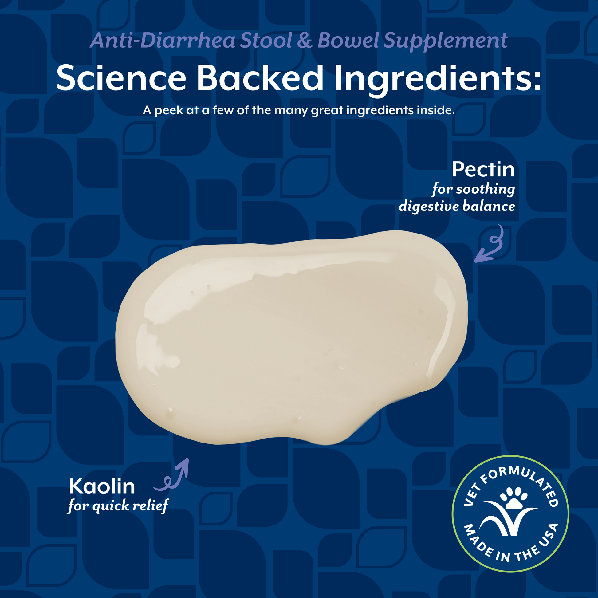 For use in dogs and cats only. Contains Kaolin, an anti-diarrheal ingredient for the absorption of toxins and Pectin, a soluble dietary fiber naturally present in citrus fruits. Helps alleviate the irritation, discomfort, and cramping associated with diarrhea.