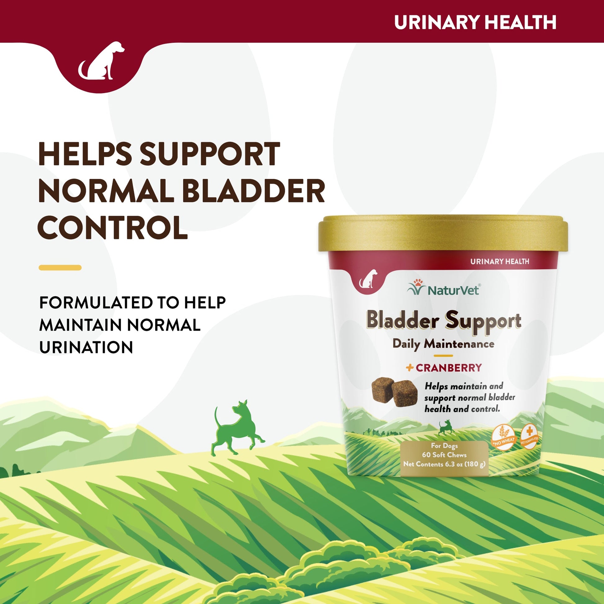 NaturVet® Dog Bladder Support Soft Chews are for use in dogs over the age of 12 weeks. Specially formulated to help maintain and support healthy bladder control and normal urination.