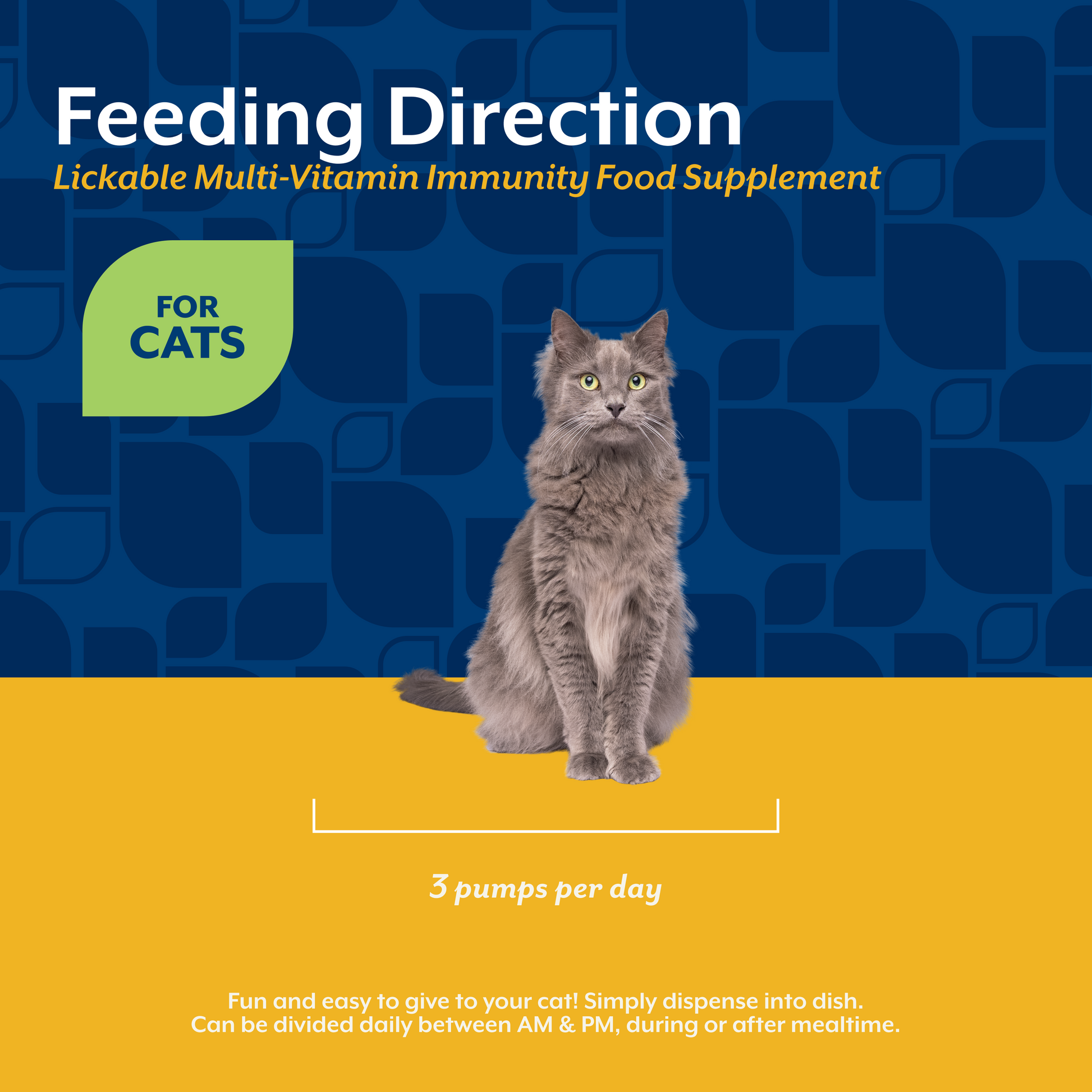 For use in cats only. Recommended to support cats over the age of 12 weeks. Contains Essential Vitamins to help maintain overall health and provide immune system support.