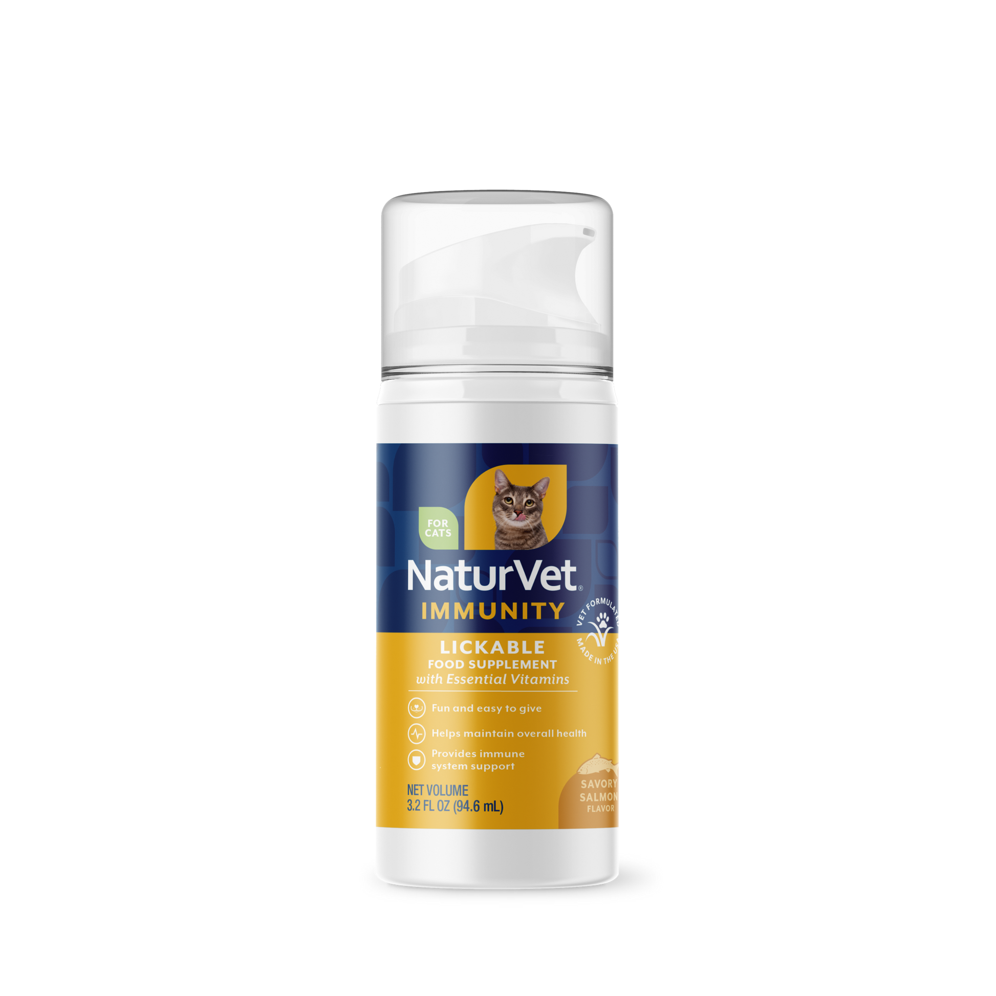 Our veterinarian formulated Lickable Multi-Vitamin Immunity Food Supplement for Cats is made with Essential Vitamins to help support your cat’s immune system, promote healthy skin and a shiny coat, and boost overall wellness, so your feline feels their best every day. With a delicious salmon flavor cats crave, it’s easy to serve on its own, mixed into meals, or spread on a lick mat for added enrichment. Daily health support, made simple, and purr-worthy.