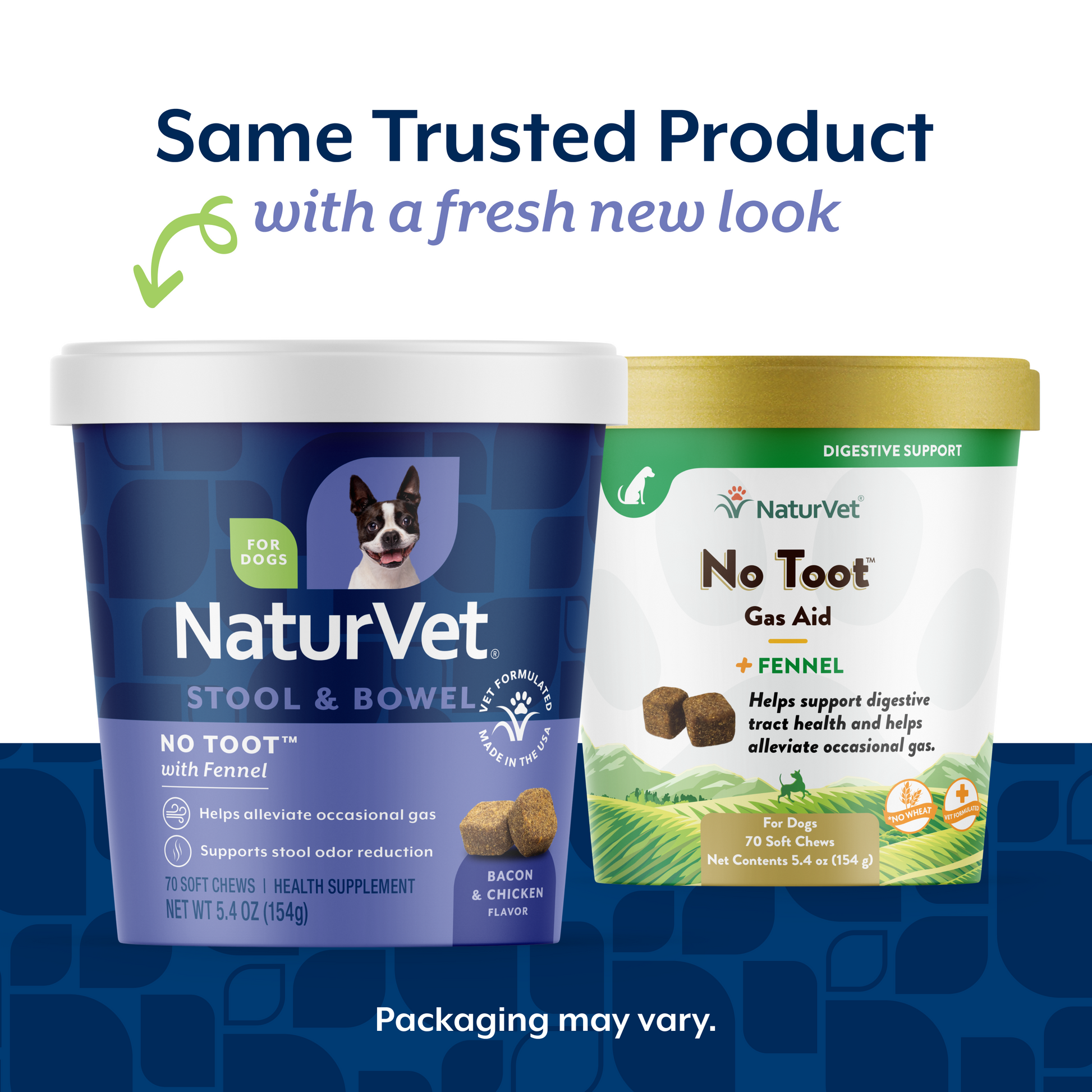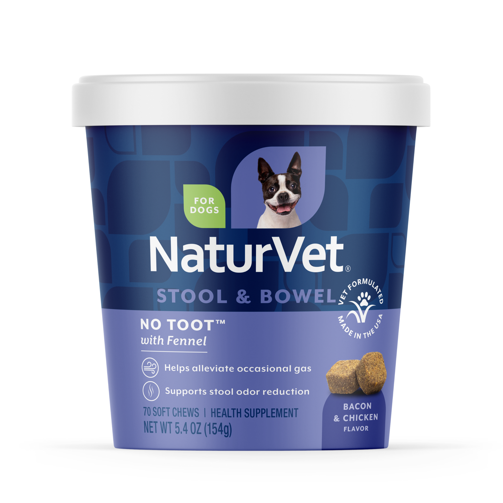 Relief that lets you breath easy, No Toot™ Soft Chews are a daily stool & bowel supplement formulated to help reduce gas, bloating, and tummy discomfort, so your pup feels better (and smells better too). Veterinarian formulated with a unique blend of probiotics, digestive enzymes, and soothing herbs like Ginger and Fennel, these tasty soft chews support a healthy gut, smoother digestion, and happier bellies.