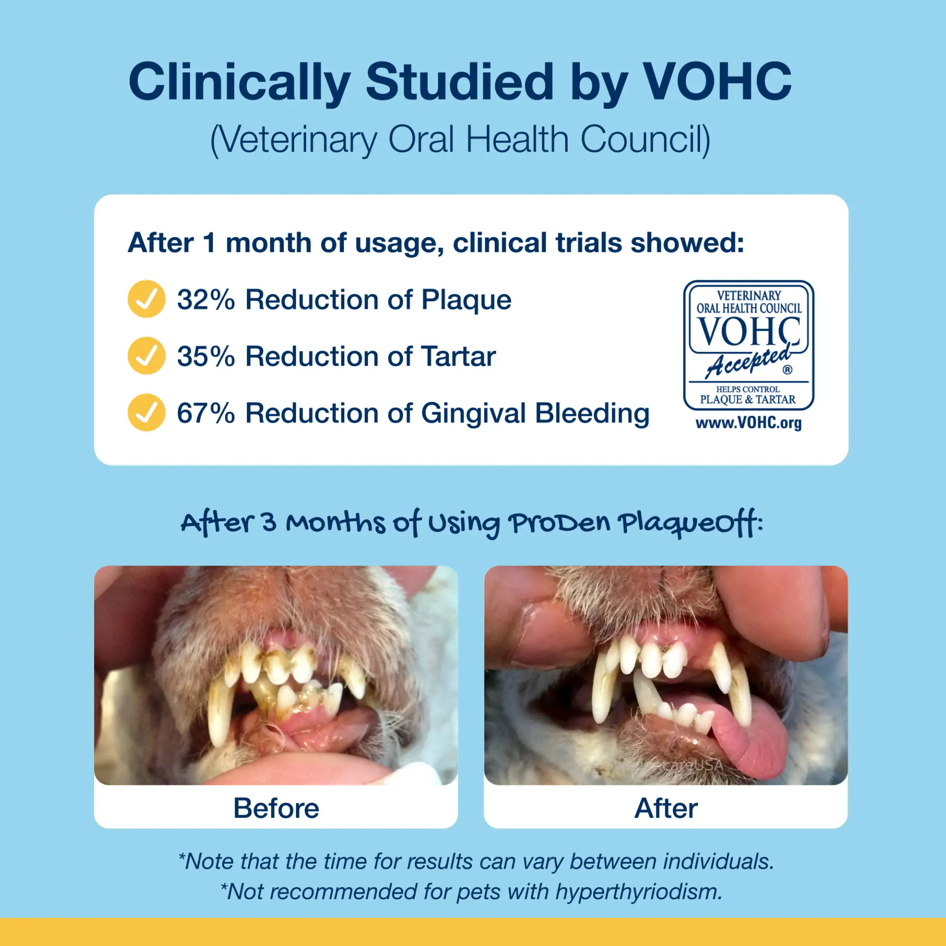 For use in large & giant breed dogs. Recommended to support healthy teeth, gums and breath odor. The ProDen PlaqueOff® key ingredient is 100% natural kelp and is sustainably harvested in the clear, cold waters off the Scandinavian coastline. Clinical trials on our kelp have shown to help reduce plaque and tartar while helping to improve bad breath.