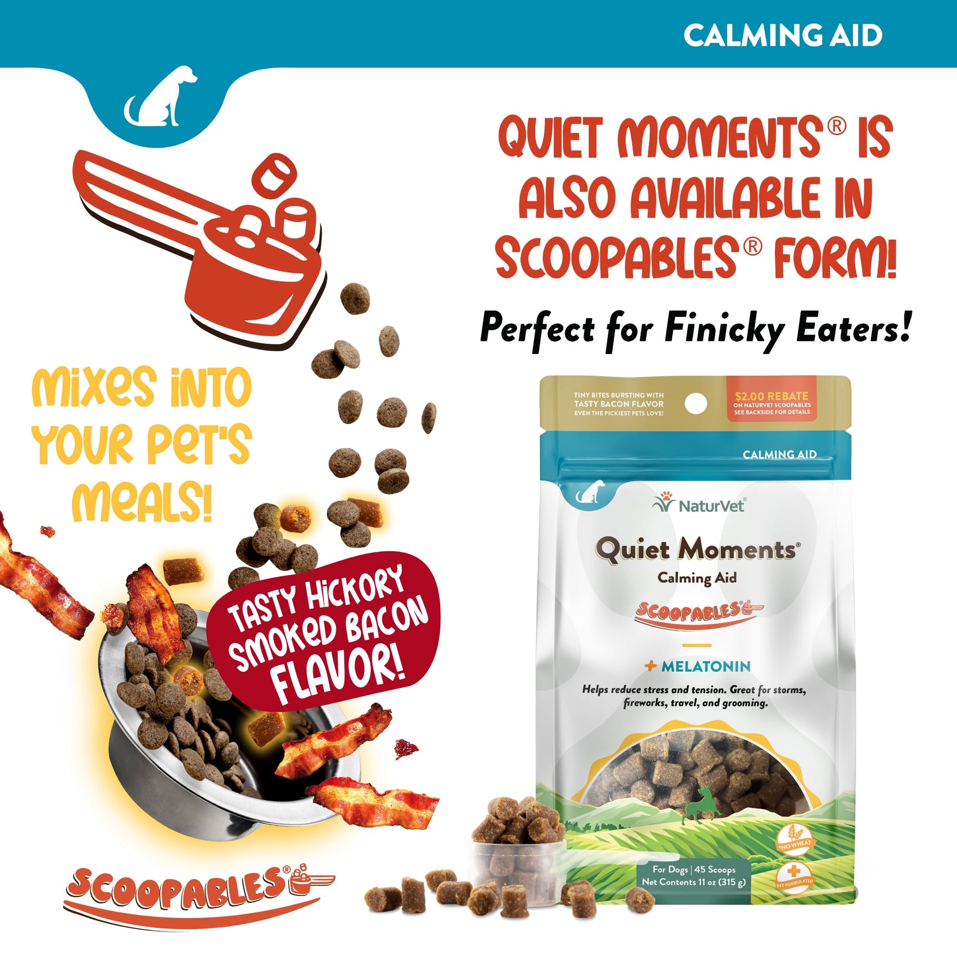 Quiet Moments® Calming Aid Tablets are veterinarian formulated for use in dogs over the age of 12 weeks. Recommended to help support the nervous system in reducing stress and tension. Also recommended for dogs when traveling by car, plane, or boat.