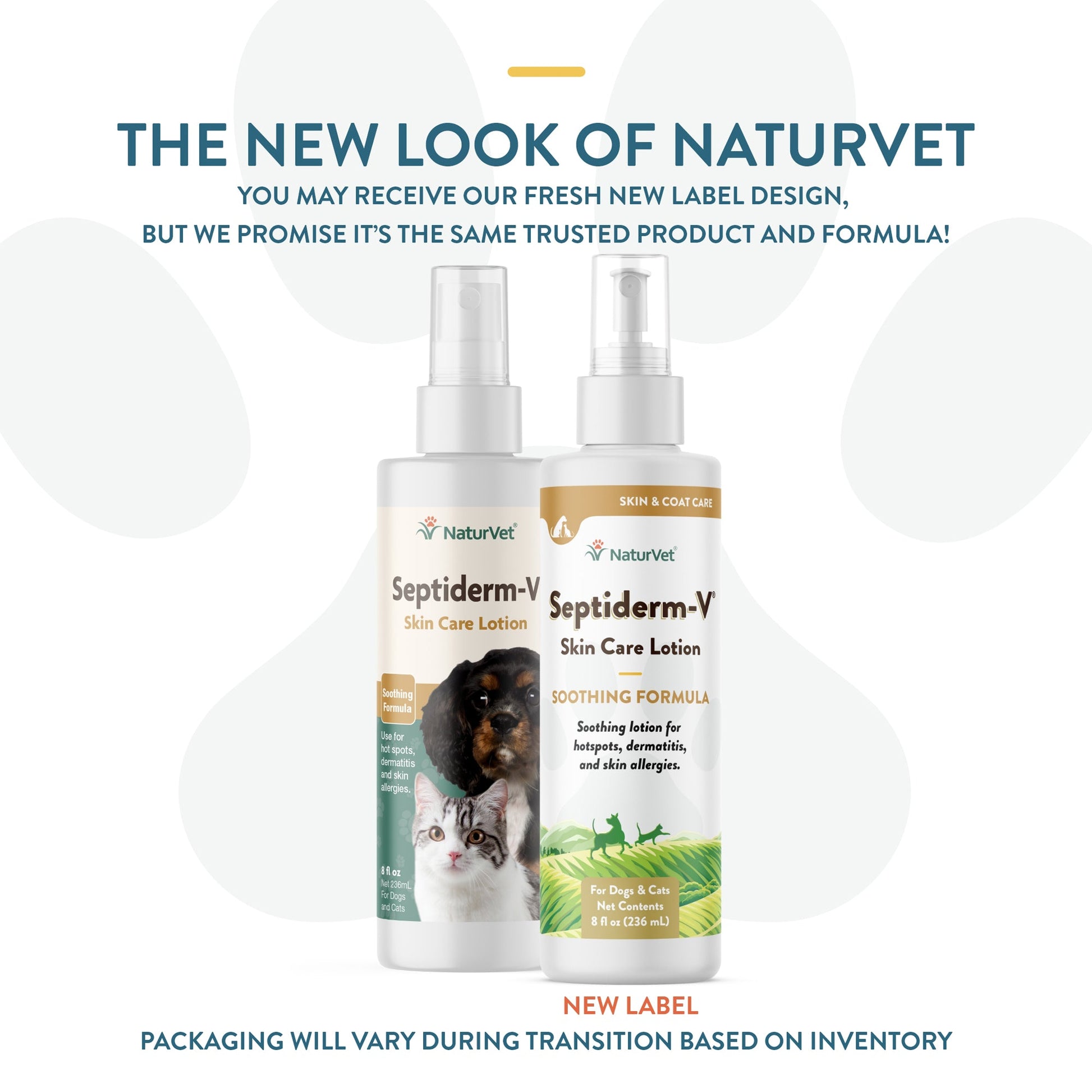 Septiderm-V® Skin Care Lotion is a soothing, non-greasy lotion. Use on dogs and cats over the age of 6 weeks.